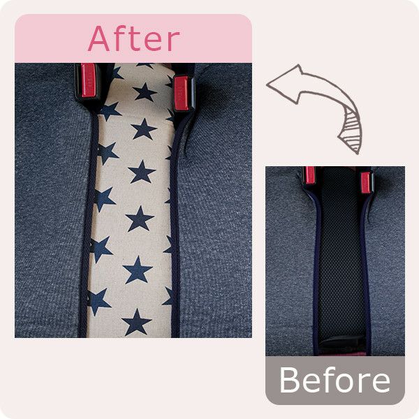 運転席側シートカバーの裏面にすき間パーツの面ファスナーをしっかりと取り付ければ完成です。