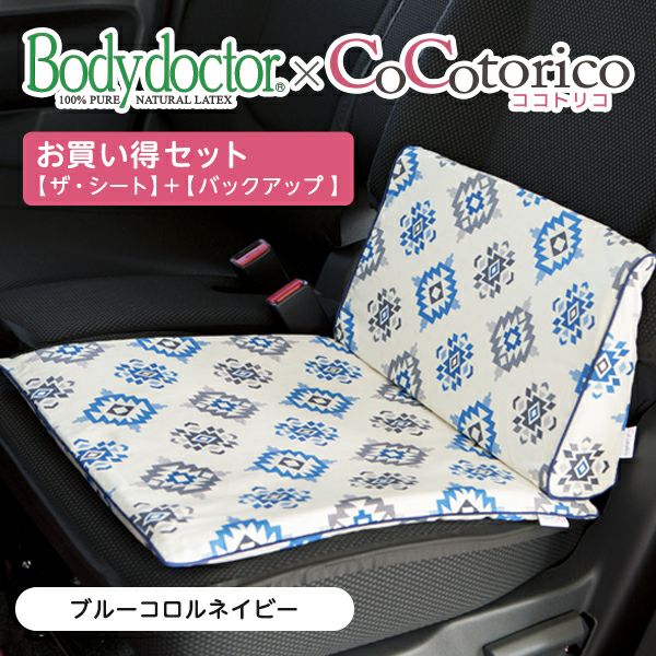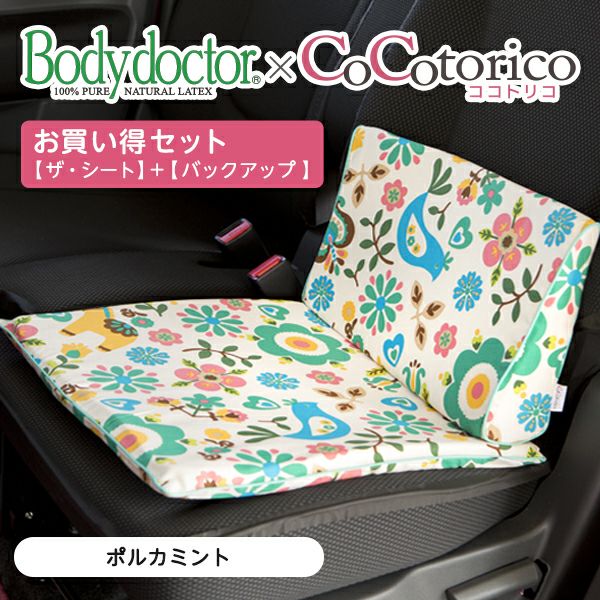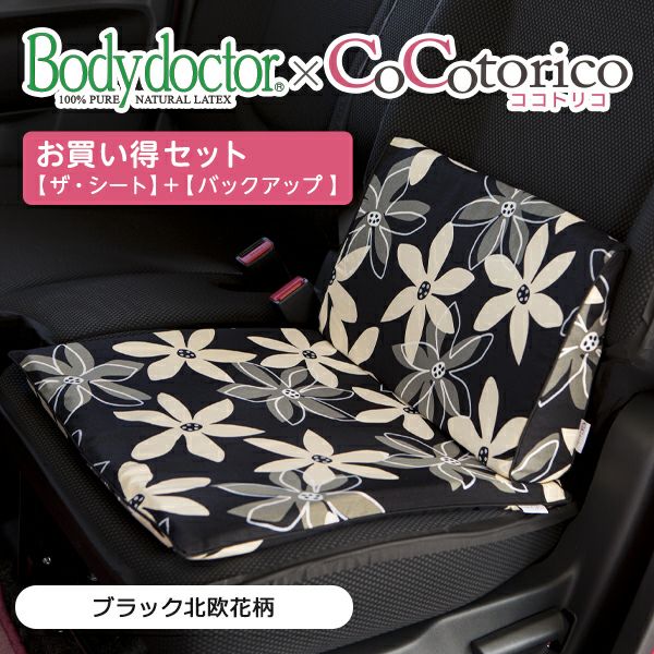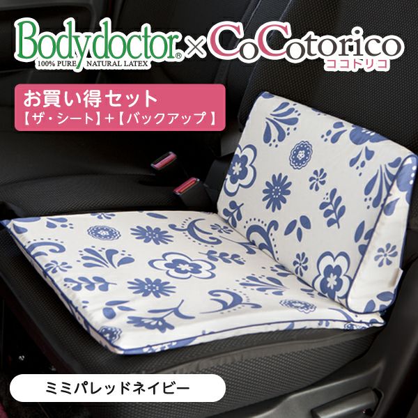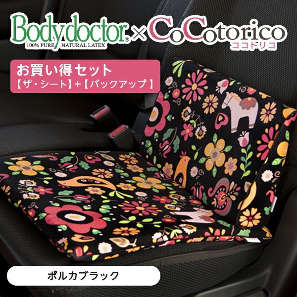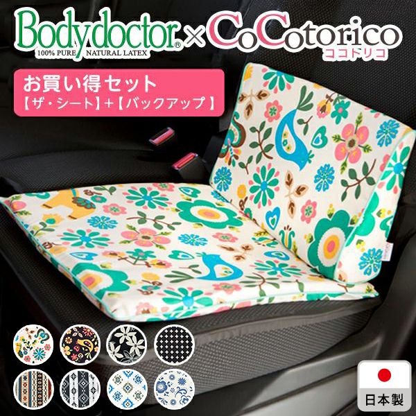 クッションのご紹介です。高品質寝具「ボディドクター」とココトリコのコラボ商品。正反発ラテックスフォームを使用し、お尻にかかる体圧を分散。女性に人気の花柄・ドット柄などから選べます。