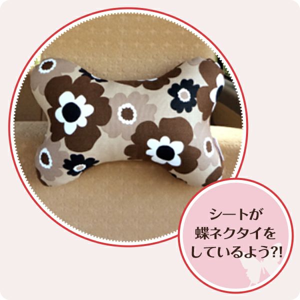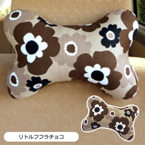 ネッククッションのご紹介です。リボンのような形が可愛いクッションで、ヘッドレストに簡単に装着でき、長時間ドライブで疲れがちな首を支えます。デザインは人気の北欧風花柄を採用。 【12/25までクリスマスキャンペーン対象品】ネッククッション/リトルフフラ柄