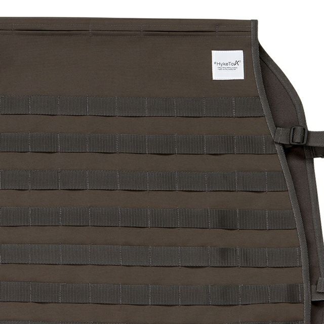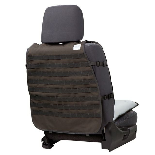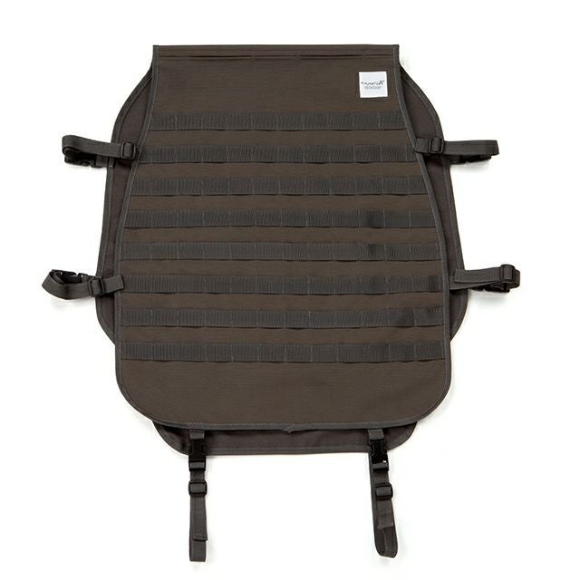 シートカバー背面側に丈夫なポリプロピレン製の帯を、等間隔で配置しました。(モールシステム)ドライブシーンや、乗車する方の必要性に応じてさまざまなモノを“取り付けたり”“引っかけたり”と、好きなように、自由に、カスタムできます。
