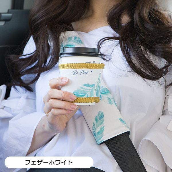 ドリンクスリーブのご紹介です。暖かい飲み物を持つときに手を保護してくれます。冷たい飲み物の結露防止にも!おしゃれでかわいいフェザー柄!