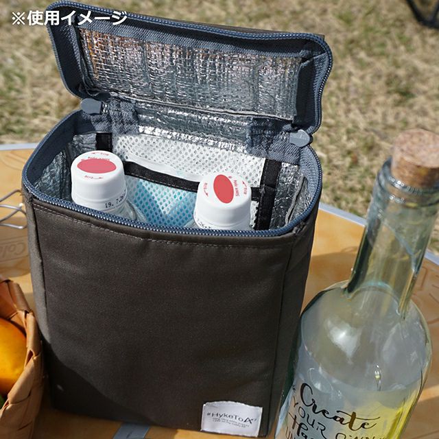 内側は保冷効果のあるアルミシート素材で、保冷剤を収納するメッシュポケットも付いています。※保冷剤は付属していません。