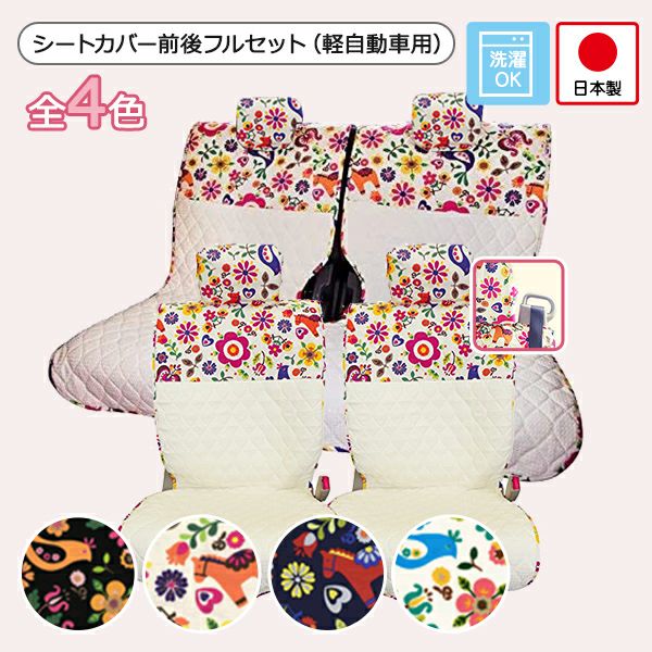 シートカバー前後セットのご紹介です。前座席はピラーレス用で、後部座席は軽自動車用です。生地の間にウレタンを挟んだ厚みのある素材です。 シートカバー前後セット 軽自動車用(前座席ピラーレス + 後部座席)/ポルカ柄