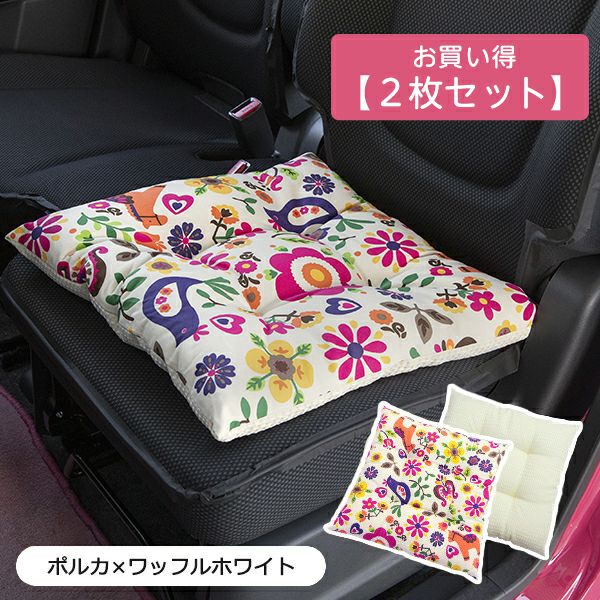 クッションのご紹介です。シートカバーなど女性向けのカー用品店。ココトリコは、軽自動車・小型車にお乗りの女性にオススメの車専用品を提案する通販ショップです。 シートクッション・お買い得2枚セット/ポルカ柄