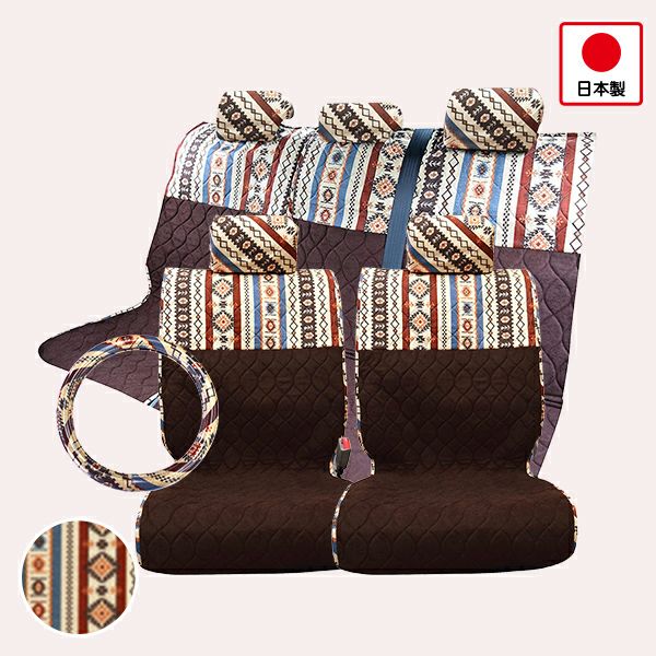 前座席シートカバー+後部座席シートカバー(普通車用)+ハンドルカバーの3点セット♪ シートカバー前後+ハンドルカバーセット(普通車コンパクトカー用)/ラパス柄