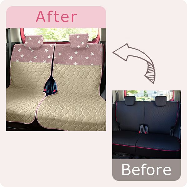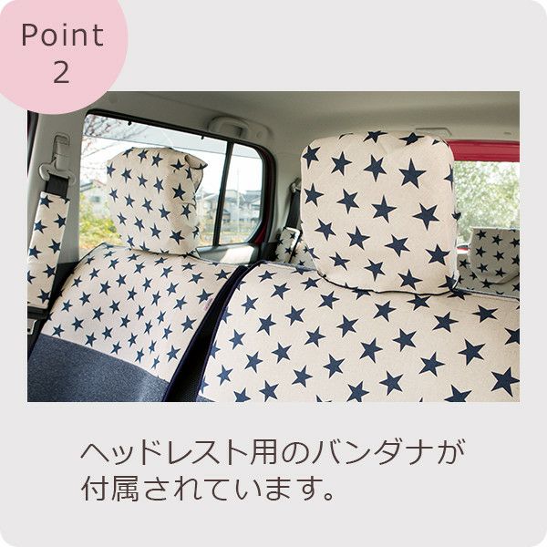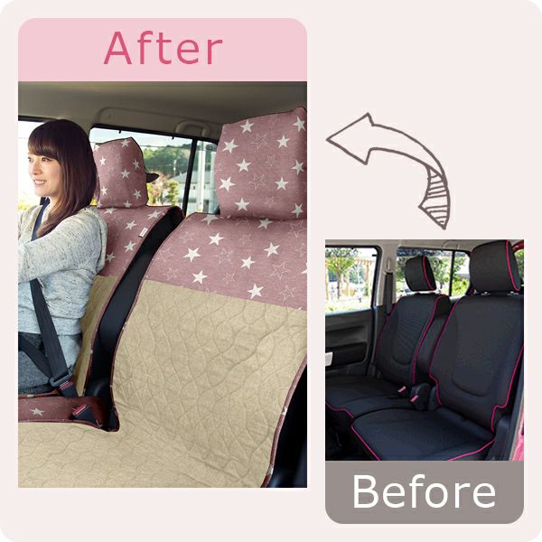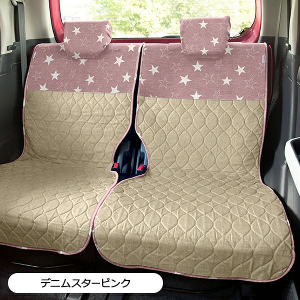 軽自動車向けの後部座席用シートカバーのご紹介です。生地の間にウレタンを挟んだ厚みのある素材で、左右が独立したシートスライドに対応。ハイセンスでおしゃれな星柄! 【12/25までクリスマスキャンペーン対象品】後部座席用シートカバー(軽自動車用)/デニムスターピンク×コルクホワイト【アウトレット/在庫限り】