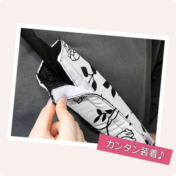 • シートベルトカバー装着時面ファスナーを留める際は、面ファスナーの凸部分が衣類に当たらないよう十分注意してください。引っかかって衣類を傷める恐れがあります。