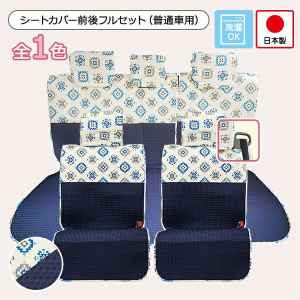シートカバー前後セットのご紹介です。前座席はピラーレス用で、後部座席は普通車コンパクトカー用です。生地の間にウレタンを挟んだ厚みのある素材です。 【在庫限りで販売終了】シートカバー前後セット 普通車コンパクトカー用(前座席ピラーレス + 後部座席)/ブルーコロル柄