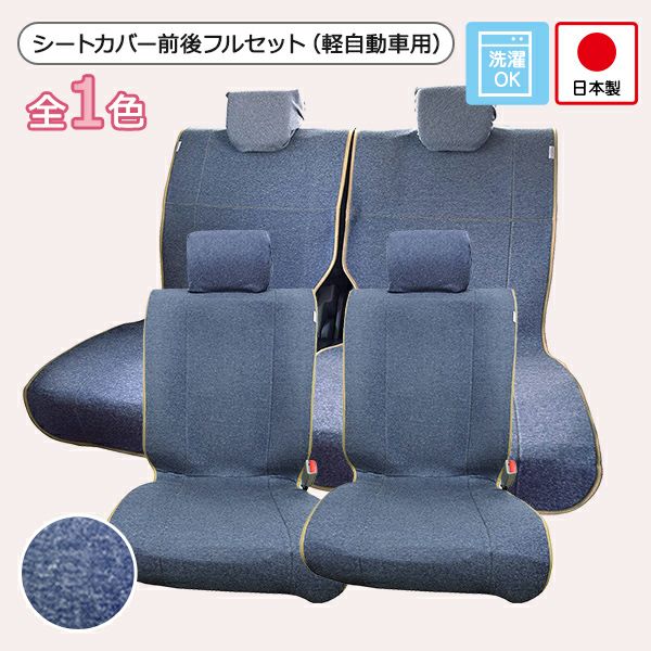 シートカバー前後セットのご紹介です。後部座席は軽自動車用です。生地の間にウレタンを挟んだ厚みのある素材で、複数の固定パーツでシートにしっかり固定します。 シートカバー前後セット 軽自動車用(前座席 + 後部座席)/ニットデニム柄