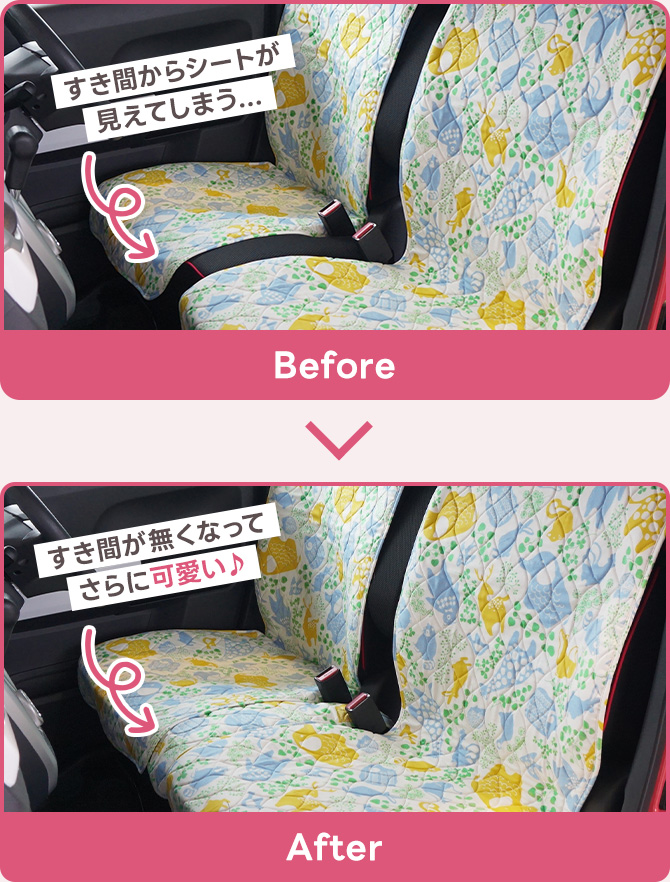 運転席の方が座席幅が広くなっているので、「すき間パーツ」を使うことで助手席とのすき間がなくなり、とっても可愛くなります♪
