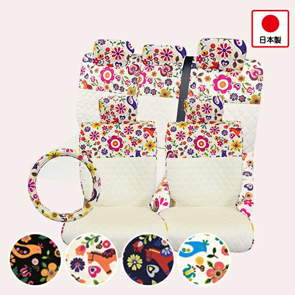 前座席シートカバー+後部座席シートカバー(普通車用)+ハンドルカバーの3点セット♪ シートカバー前後+ハンドルカバーセット(普通車コンパクトカー用)/ポルカ柄