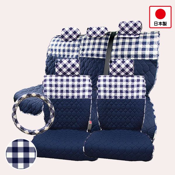 前座席シートカバー+後部座席シートカバー(普通車用)+ハンドルカバーの3点セット♪ シートカバー前後+ハンドルカバーセット(普通車コンパクトカー用)/ネイビーチェック柄