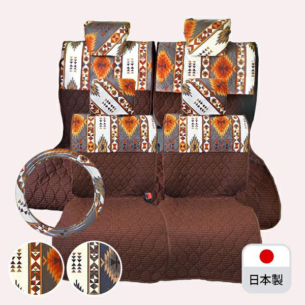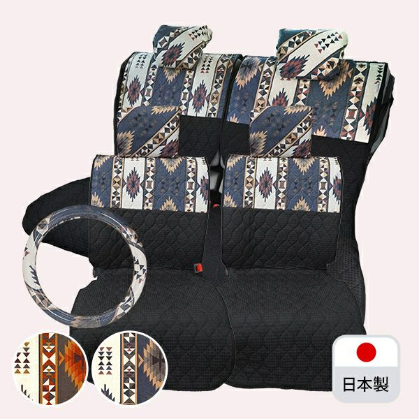 前座席シートカバー+後部座席シートカバー(軽自動車用)+ハンドルカバーの3点セット♪ シートカバー前後+ハンドルカバーセット(軽自動車用)/アンデス柄