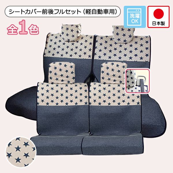 他の画像を見る シートカバー前後セットのご紹介です。前座席はピラーレス用で、後部座席は軽自動車用です。生地の間にウレタンを挟んだ厚みのある素材です。 【在庫限りで販売終了】シートカバー前後セット 軽自動車用(前座席ピラーレス + 後部座席)/スターネイビー柄 特別価格 ¥ 26,500 税込 カートに入れる お気に入りに登録する