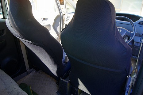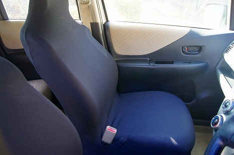 本日はスタッフが10年間愛用している車【トヨタ ラクティス】に『伸びるシートカバー』を装着した写真をご紹介いたします!