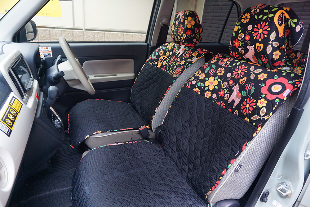【ダイハツ ミラトコット】に おしゃれでかわいいシートカバーを装着しました