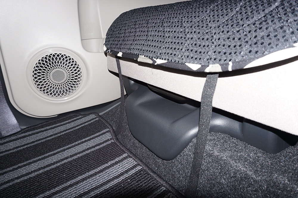 通常のシート形状なので前座席用シートカバーを装着いただけますが1つだけ注意点がございます。