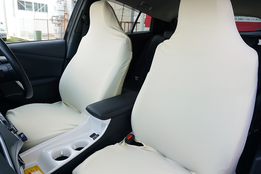 本日は、【トヨタ プリウス】に伸びるシートカバーを装着した様子をレポートいたします!