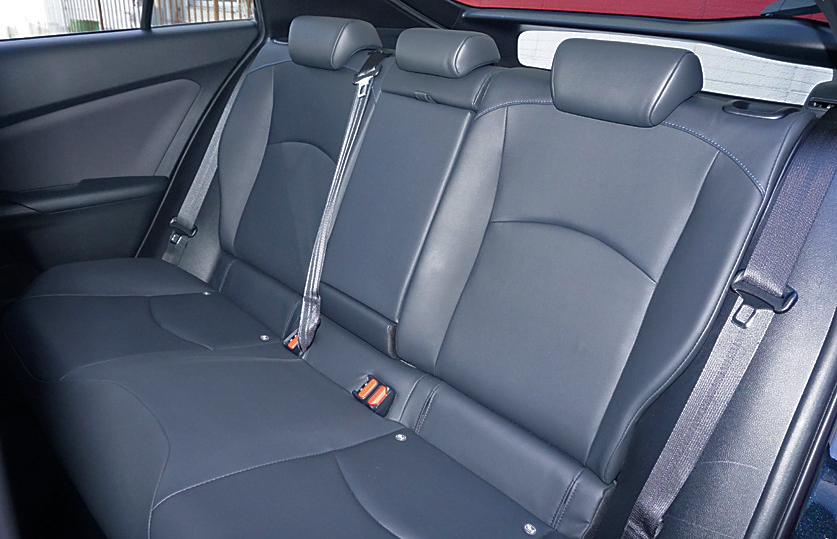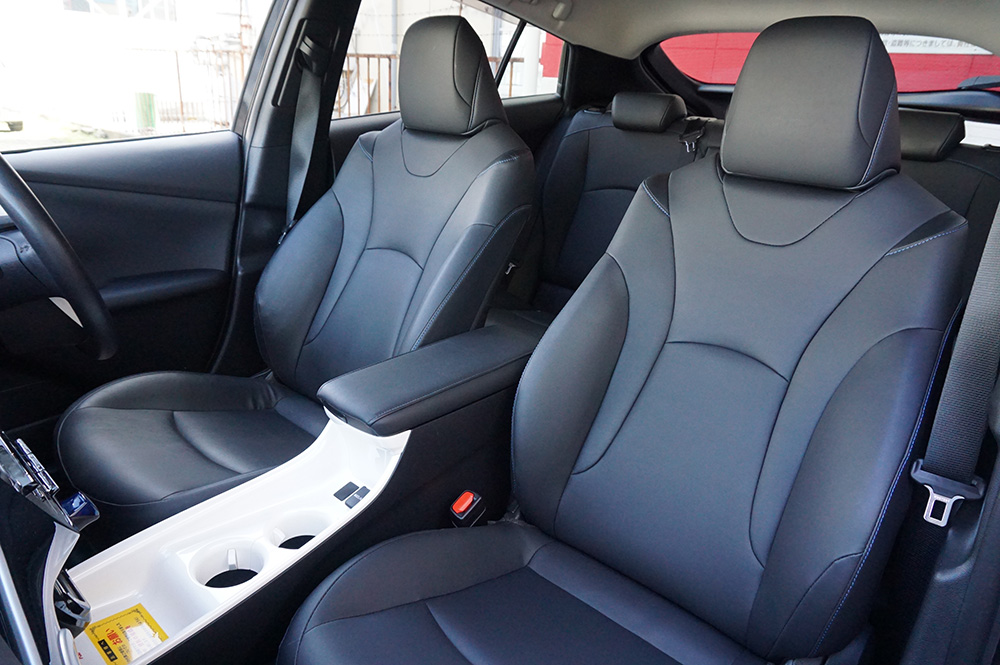 プリウスの前座席シートは、サイズが大きめのバケットシートになっています。