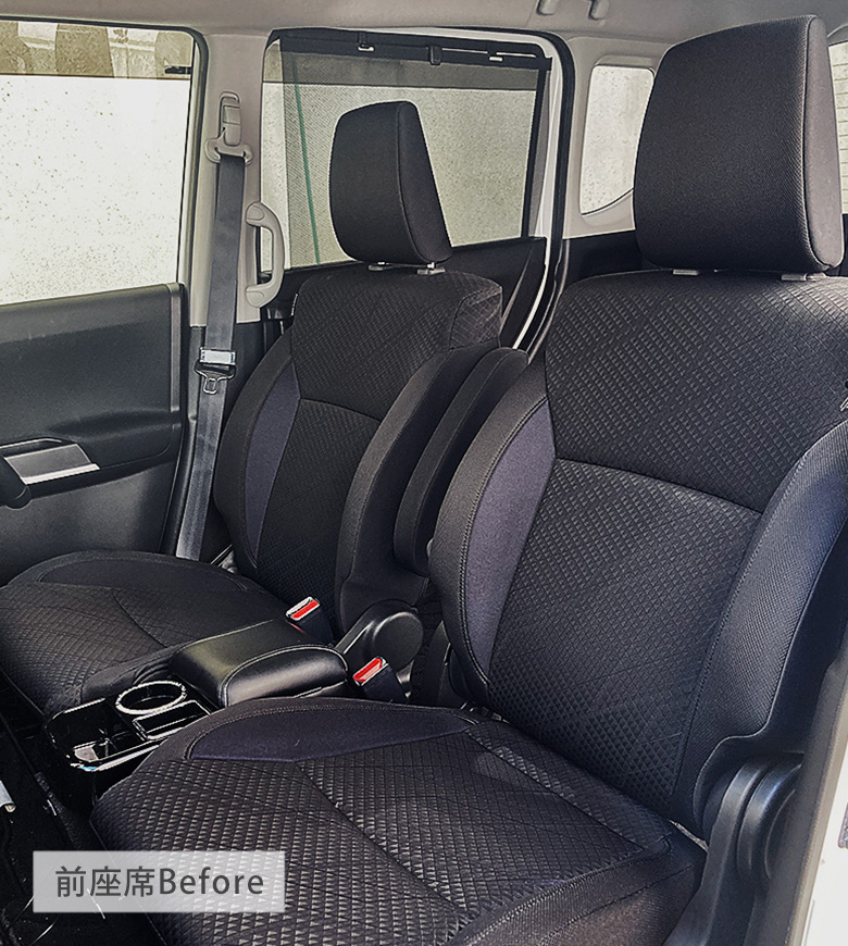 ソリオ(ソリオバンディット)の前座席は通常のシート形状なので、前座席用シートカバーを装着できます。