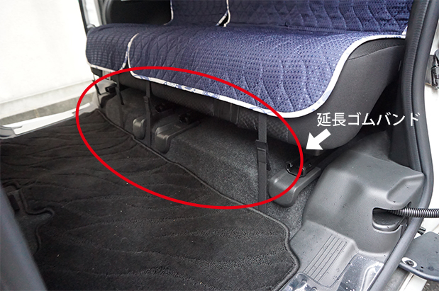また、ソリオ(ソリオバンディット)は座面の高さがあるので延長ゴムバンド(別売り)を取り付けると、裾部分もしっかりと取り付けられます。