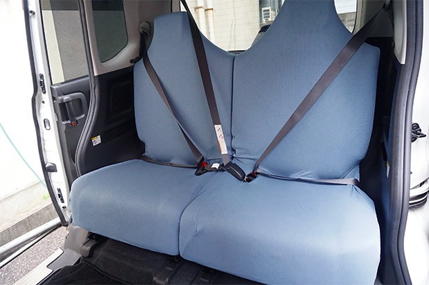 座席が5:5分割のため、前座席と同じく伸びるシートカバー(左右独立タイプ)