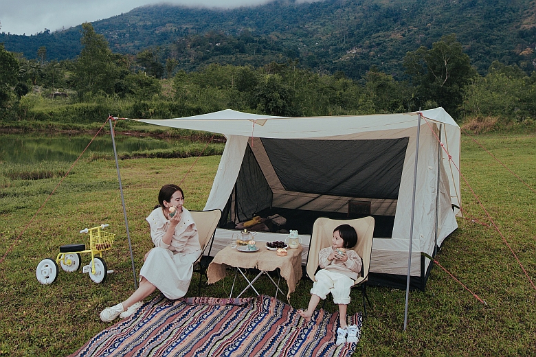 キャンプサイトにテントを張って、中でお昼寝やゲームをするのも立派なデイキャンプの楽しみ方です。キャンプ場に行ったら●●をしなきゃいけない、ということはありません。美味しい空気と美しい緑の中で、読書に耽ることもデイキャンプの楽しみ方のひとつです。