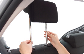 まずは、ヘッドレストを取り外します。シートとヘッドレストが一体型のシートには取り付けが出来ません。