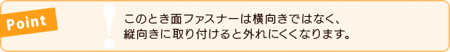 右写真のように、面ファスナー部分がシート継ぎ目から出るように取り付けます。