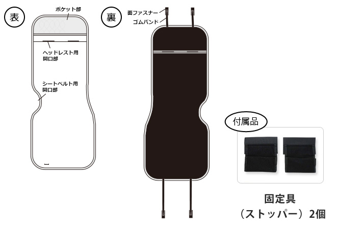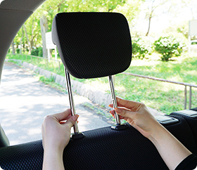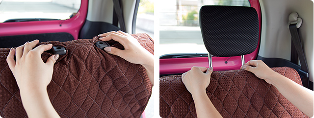 シートとヘッドレストが一体型のシートには取り付けが出来ません。 -