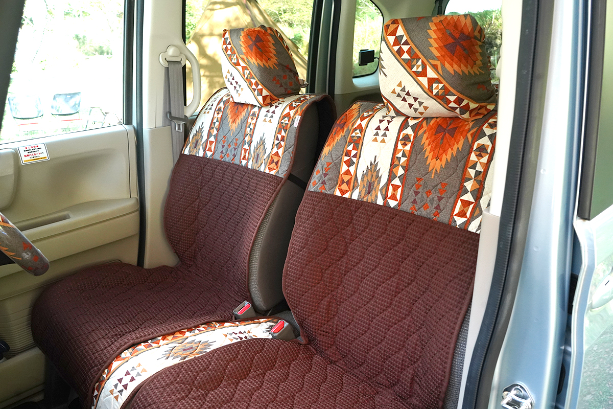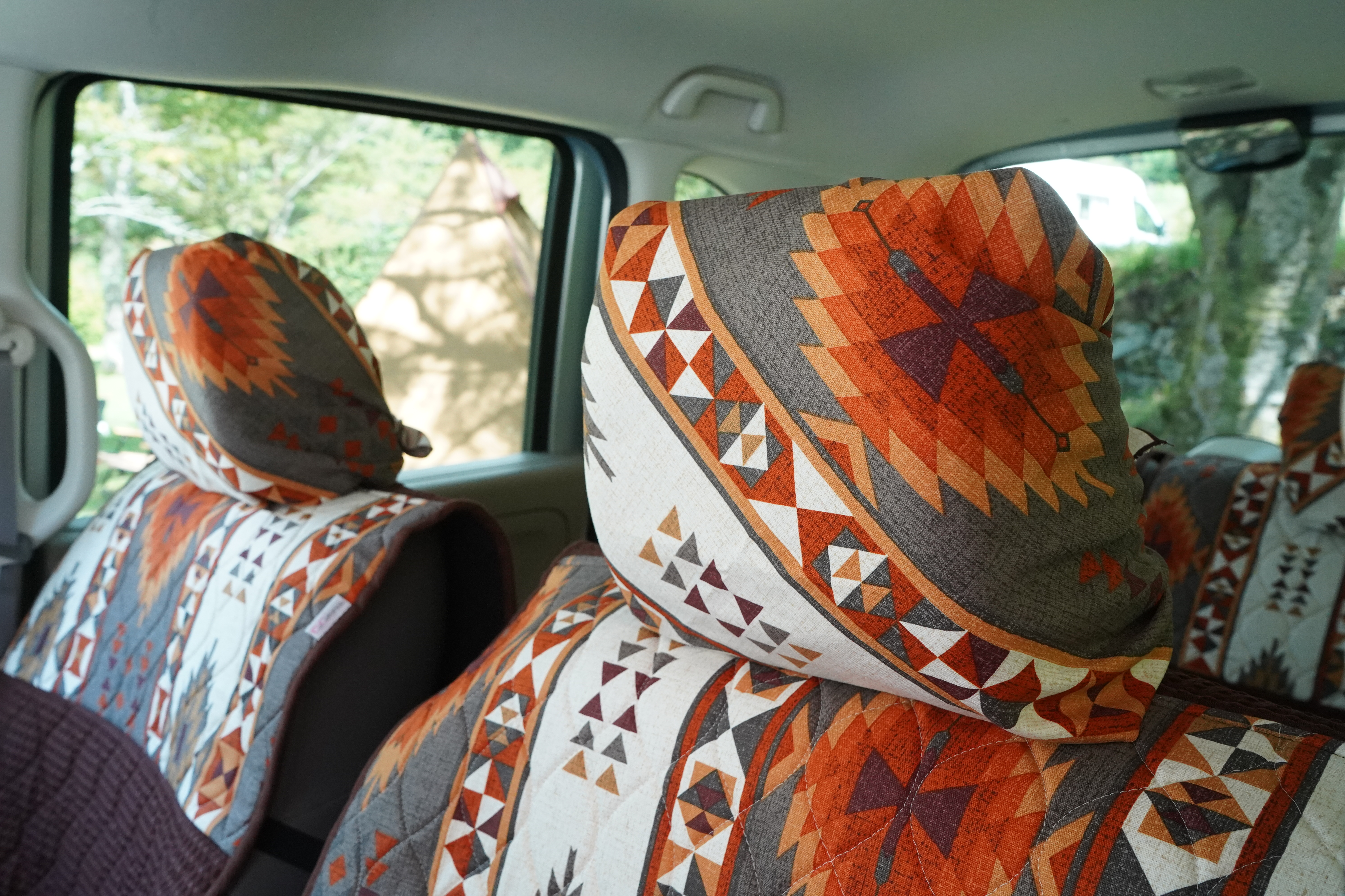 個性的なネイティブ柄+「くすみ系カラー」の配色でアウトドア好きの方はもちろんのこと、ご家族で使用する車にもおすすめのデザインです。