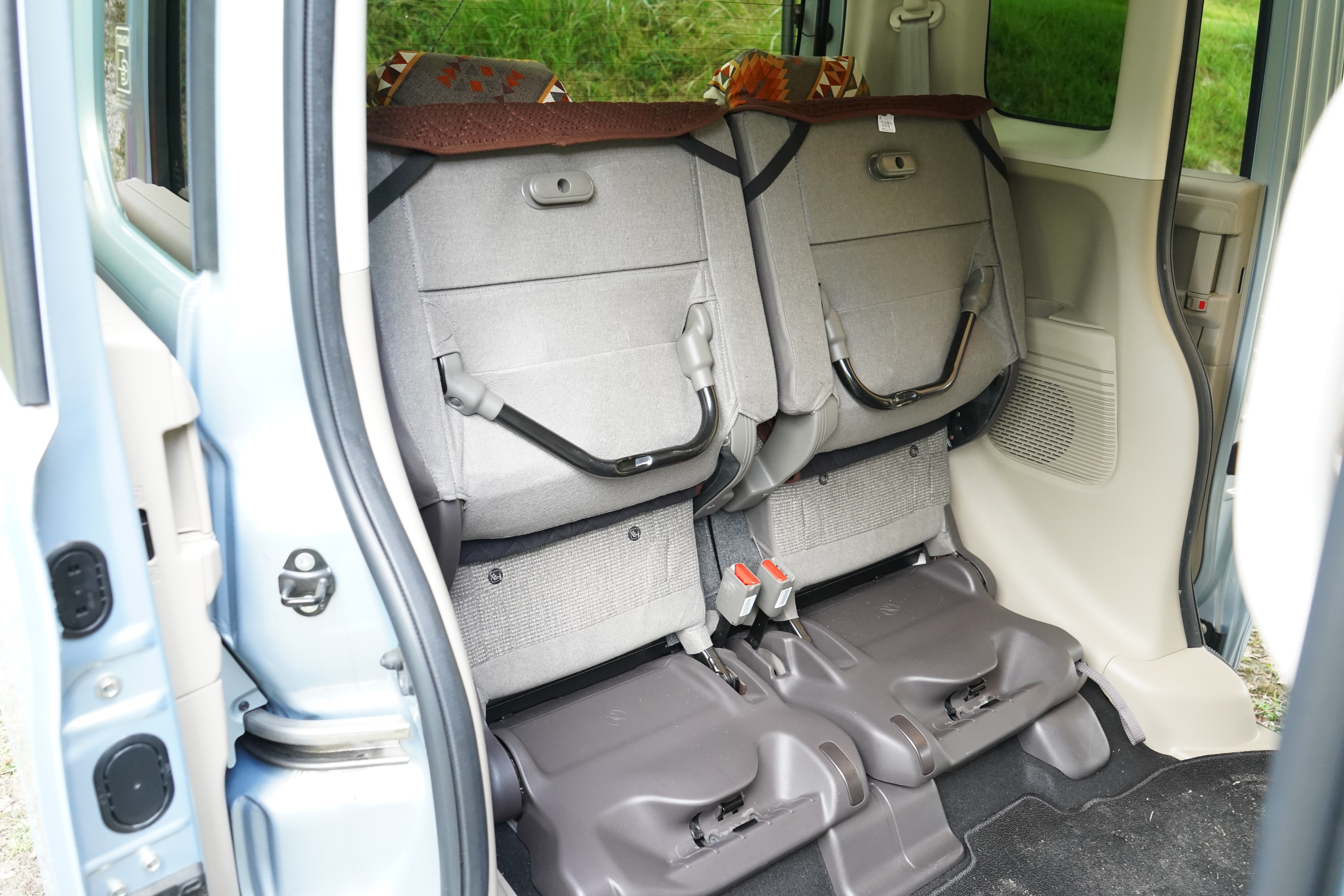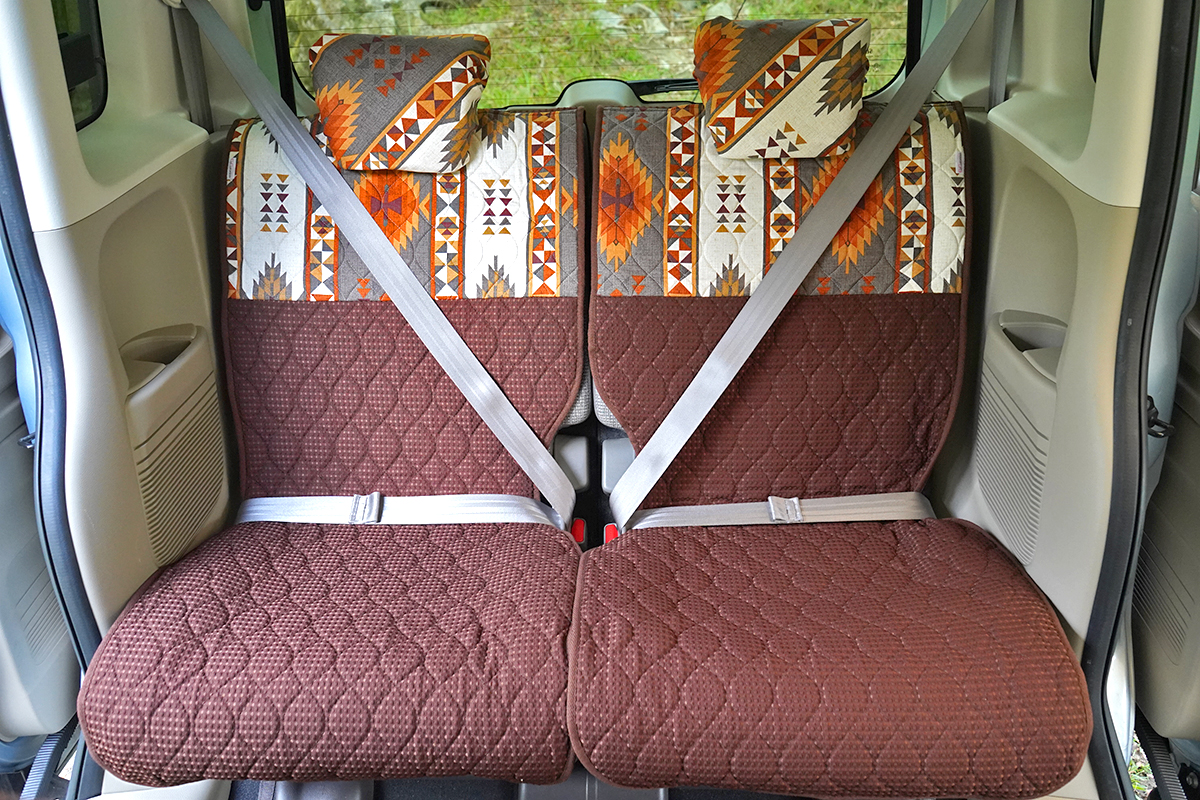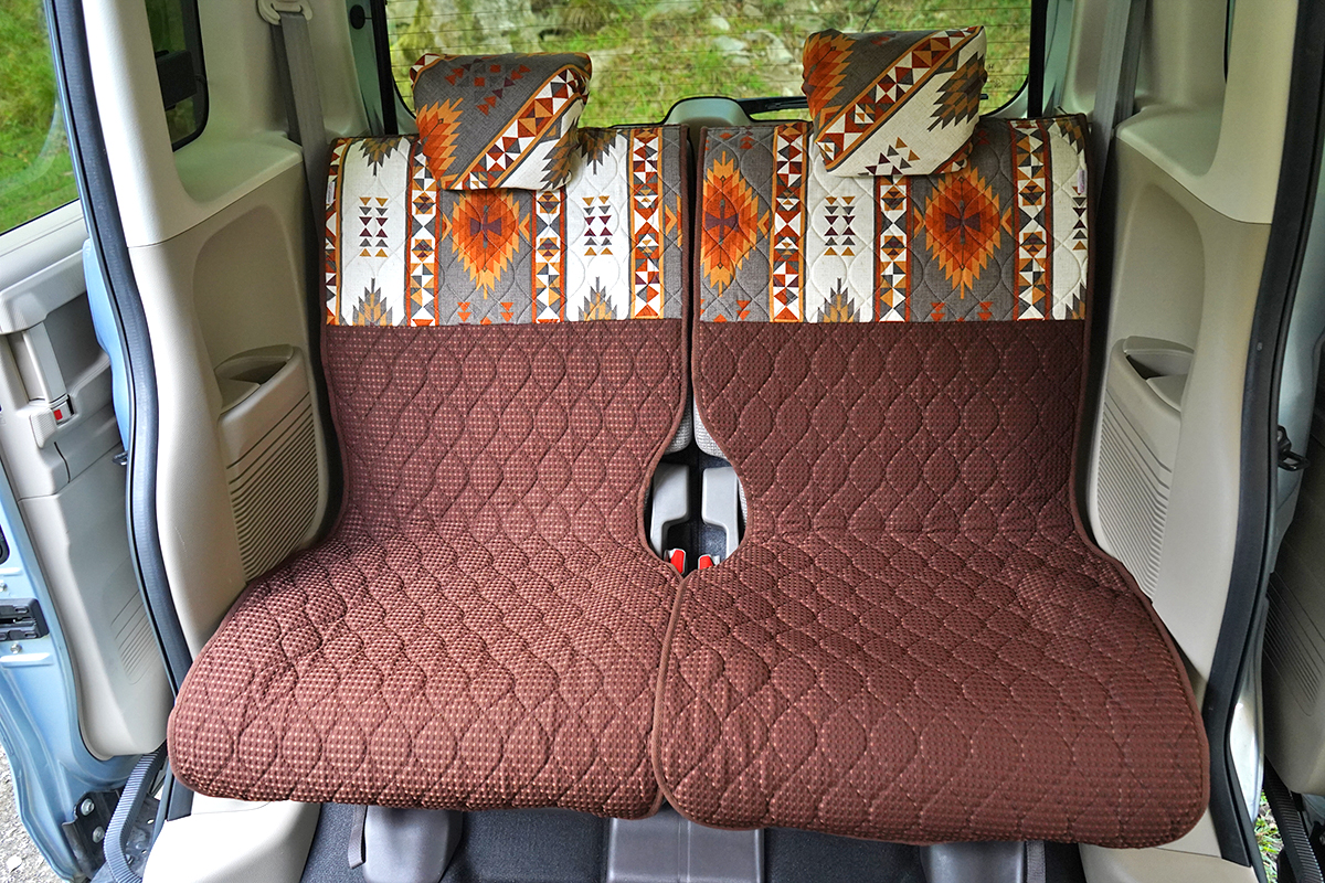 【NBOX・NBOXカスタム(ベンチシートタイプ)】の後部座席は、シート同士が5:5に分割されているので、後部座席シートカバー(軽自動車用)を装着いただけます。