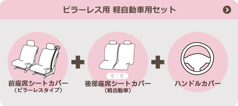ハスラー、ラパン、スペーシア、ワゴンR、NBOX(ベンチシートタイプ)、ソリオバンディット、MRワゴン、アルト(ヘッドレストが外せるタイプ)、クロスビー、エヴリィワゴン、ジムニー、ステラ、キャンバス、ムーヴ、キャスト、N-ONE、N-WGN、ウェイク、ek・ekクロス、ekワゴン、アトレーワゴン、デイズ、フレアクロスオーバー、フレアワゴン、シエンタ(6人乗り:前座席+2or3列目、7人乗り:前座席+3列目)、フリード(6人乗り:前座席+2or3列目、7人乗り:前座席+3列目) など
