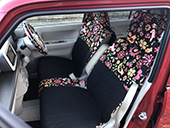 ココトリコさんには目移りしてしまうくらいたくさんの種類があり見てるだけでも楽しかったです。迷いに迷いブラックの花柄にしましたが、車内が一気に華やかになりました! -