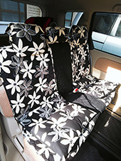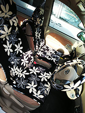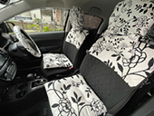 迷いに迷いブラックの花柄にしましたが、車内が一気に華やかになりました! -