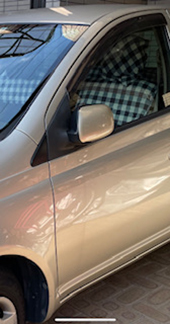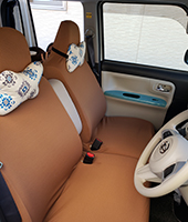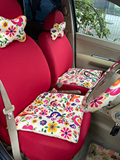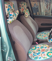 もう17年も乗っている車ですがココトリコのカバーやクッションで>いつも可愛い車だと褒められます!毎日車通勤ですが、雨の時も仕事したくないなあという時も車の綺麗な色に癒されて気分があがりますよ!ホントに感謝です。