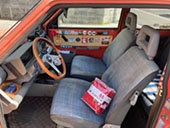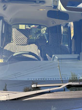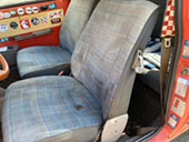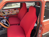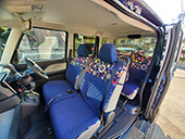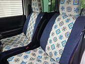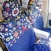 引出しにはウィリアムモリスのシートを貼り、運転席のヘッドカバーは自前のリバティプリント生地を付けましたが生地が良いので違和感なく馴染んでます。