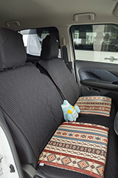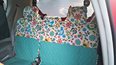 6:4分割の後部座席用カバーとベンチシート用すきまカバーは、ココトリコさんだけ!パッソの後部は分割が逆ですが、左右逆に取り付ければ問題なし。