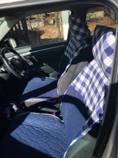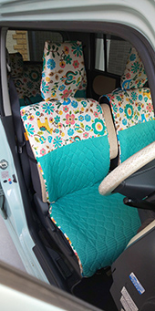 もう17年も乗っている車ですがココトリコのカバーやクッションでいつも可愛い車だと褒められます!毎日車通勤ですが、雨の時も仕事したくないなあという時も車の綺麗な色に癒されて気分があがりますよ!ホントに感謝です。