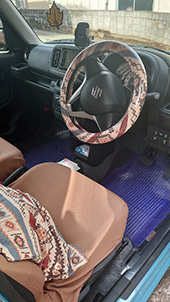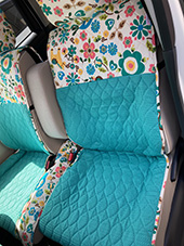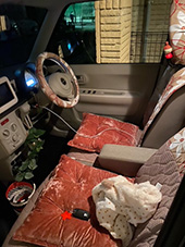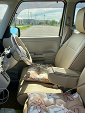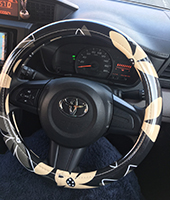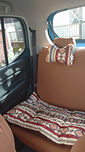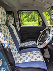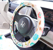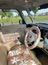 ハンドルカバーとお揃いのクッションがポイントになって、車内に合うかわいい柄が見つけられて良かったです。
