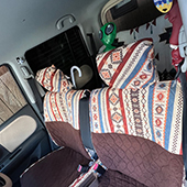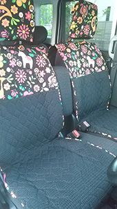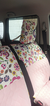 7年目のだいぶ年季の入った車ですが、シートカバーを変えると一気に雰囲気も変わって車に乗るのが楽しくなりました。とても可愛い柄なので、いつも一緒に乗っている子供も気に入ってくれています!