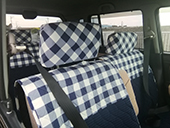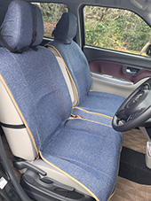 車種はメルセデスベンツですが4歳と2歳の子供と車で出かけることが多いので明るい車内にしたく、でもおしゃれさも欲しいなあとデニムを選びました。