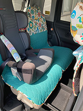 なかなか8人のりのヴォクシーにはあうものがなく仕方なくバスタオルをひいたりして工夫をしていましたが、やはり、ずれたりひいてもぐしゃぐしゃになってめんどくさかったりで、ずっと探してやっとココトリコさんに出会いました。