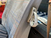 外れないヘッドレスト、後席アクセス用のレバーがシートの横にある。しかも、色目などお洒落には妥協出来ない。