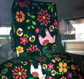 市販のシートカバーを長らく使っておりましたが、全然可愛くもないし、自分らしい感じも出せなかったので、単なる汚れ除けとしての役割でした。