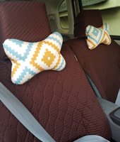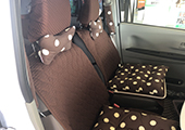 前の車のときからネッククッションを使っていました。その時からチョコレート色の大きめドットが可愛くてお気に入りになり、今回車が新しくなったのを機会に少しずつ揃えました。