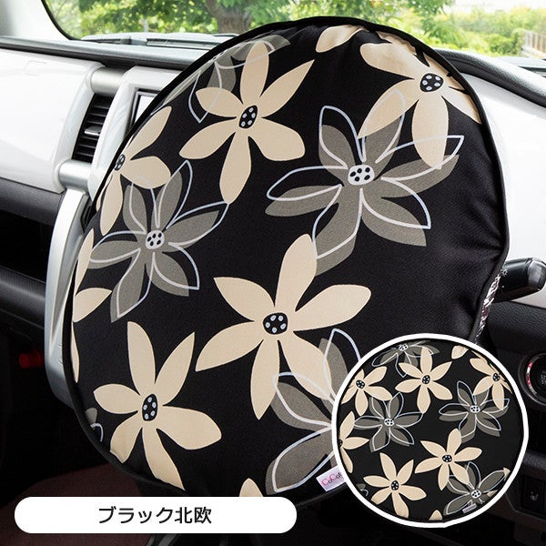 ハンドルカバーのご紹介です。直径が36cm~37.5cmのハンドルに対応。表面を透明PVCで覆っているのでお手入れが簡単です。デザインは女性に人気の様々なフラワープリントを採用。 ハンドルカバー/北欧花柄